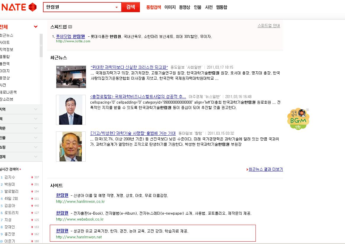 - 24. \`네이트\`에서 한림원을 검색해보았습니다.