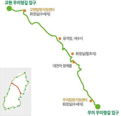 우이령길은 서울 강북구 우이령과 경기 양주시 교천리를 연결하는 작은 길로, 북쪽의 도봉산과 남쪽의 북한산의 경계입니다. 무장공비의 청와대 침투사건으로 인하여 민간인의 출입이 전면 금지되었다가 탐방 예약제로 개방된 자연생태계가 잘 보존된 지역으로, 우이령 계곡과 숲을 함께 느낄 수 있는 구간입니다. 맨발체험이 가능하며, 노약자 모두 걸을 수 있는 편안한 길입니다.